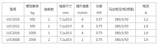 Rated load 500 - 2000 kg Cm ujc electric hoist is designed in accordance with the more stringent application standard of the entertainment industry. Ujc is very handy in lifting the aluminum frame for lighting and sound, mobile performance and background curtain. Lightweight, portable and quiet make ujc redefine the traditional lifting equipment industry. Product parameters Rated load: 500 - 2000 kg Speed: 2 - 8m / min (at 50 Hz) Voltage: 380 V - 3P H - 50 Hz 5-socket guide sprocket: compared with the traditional 4-socket guide sprocket, it increases the fit by more than 25%, reduces the chain wear, and makes the lifting process more stable Mechanical overload protection device: to help operators and hoist equipment to prevent the harm caused by overload, chain sticking or wrong phase. Multiple motor brake friction plate: designed according to high-strength working level, reliable in operation, can accurately and directly act on the chain safety stop in operation; connected to the end of lifting chain to enhance protection; oil immersed transmission gearbox: make the gear life longer, easy to operate Make it quieter Upper guide chain plate: prolongs chain service life and reduces noise Lower guide chain plate: realize the transformation between different load bearing One chain size: suitable for different models to reduce inventory Convenient transportation: all models are designed with handles to facilitate handling and pulling Optional dual brake system Optional bgv-c1 standard Variable frequency adjustable speed motor can be selected to meet and exceed international standards Made in USA