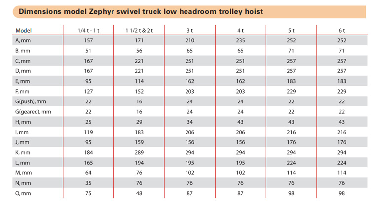 Zephyr Swivel Truck Low Headroom Trolley Hoist
